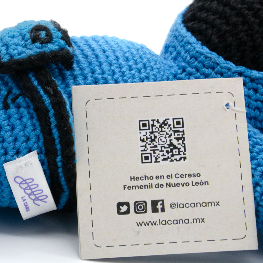 Este peluche fue realizado por mujeres privadas de su libertad que forman parte del proyecto social La Cana. Con tu compra contribuyes a que más mujeres puedan tener una fuente de ingresos digna y lejos de la violencia, que les permita solventar sus gastos y apoyar economicamente a sus familias.